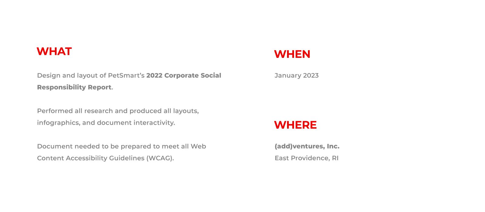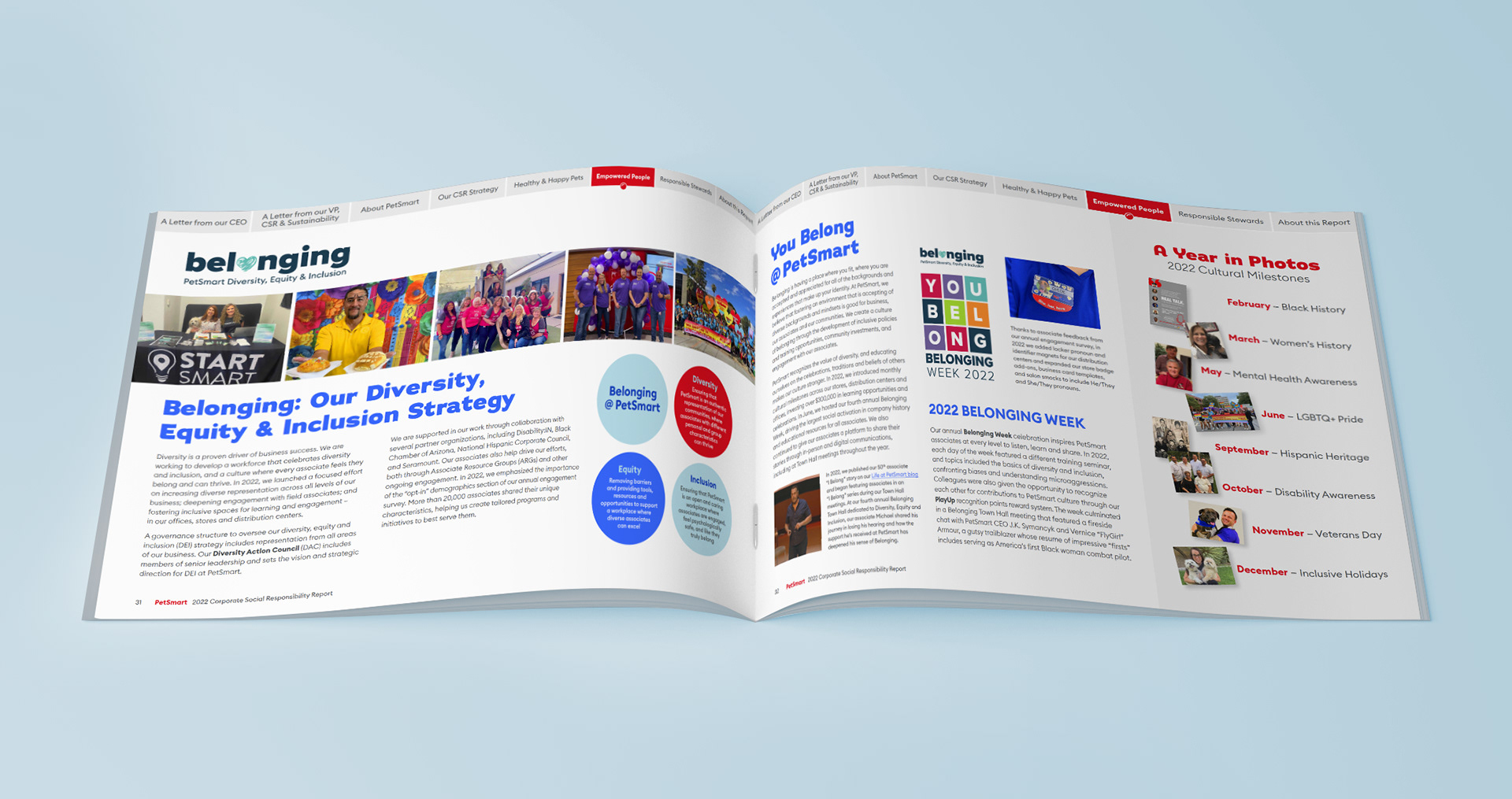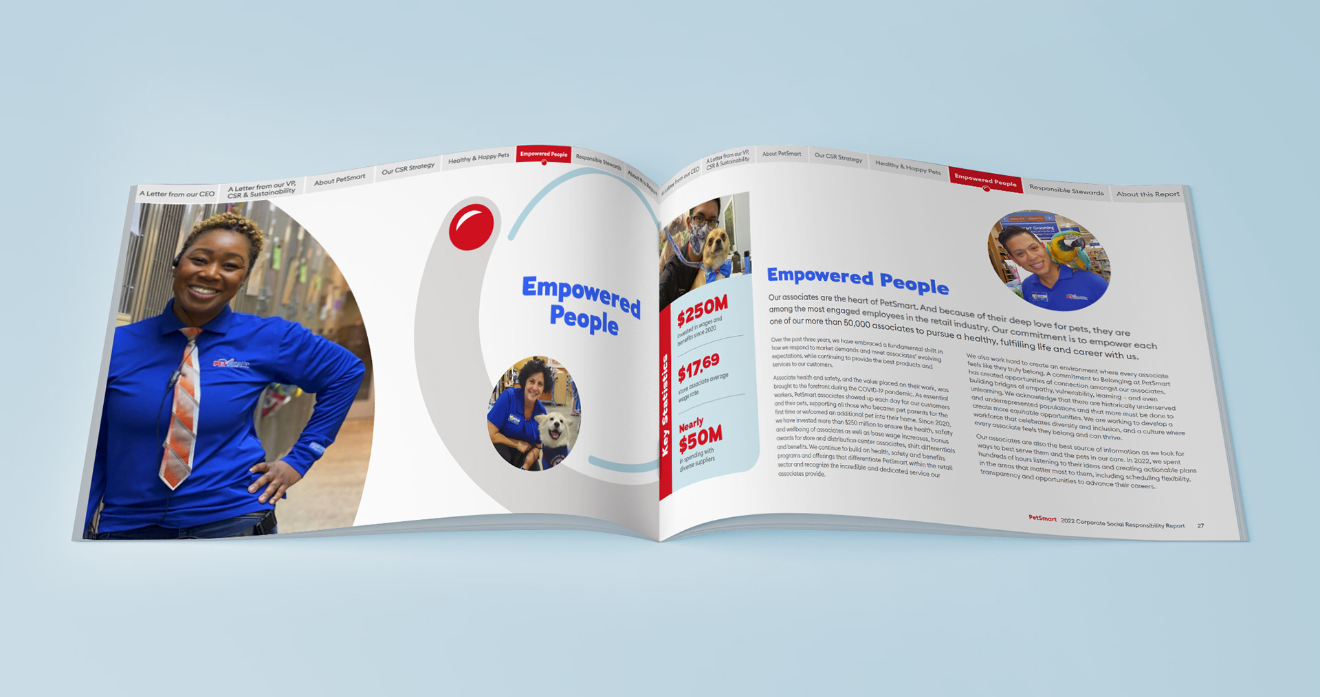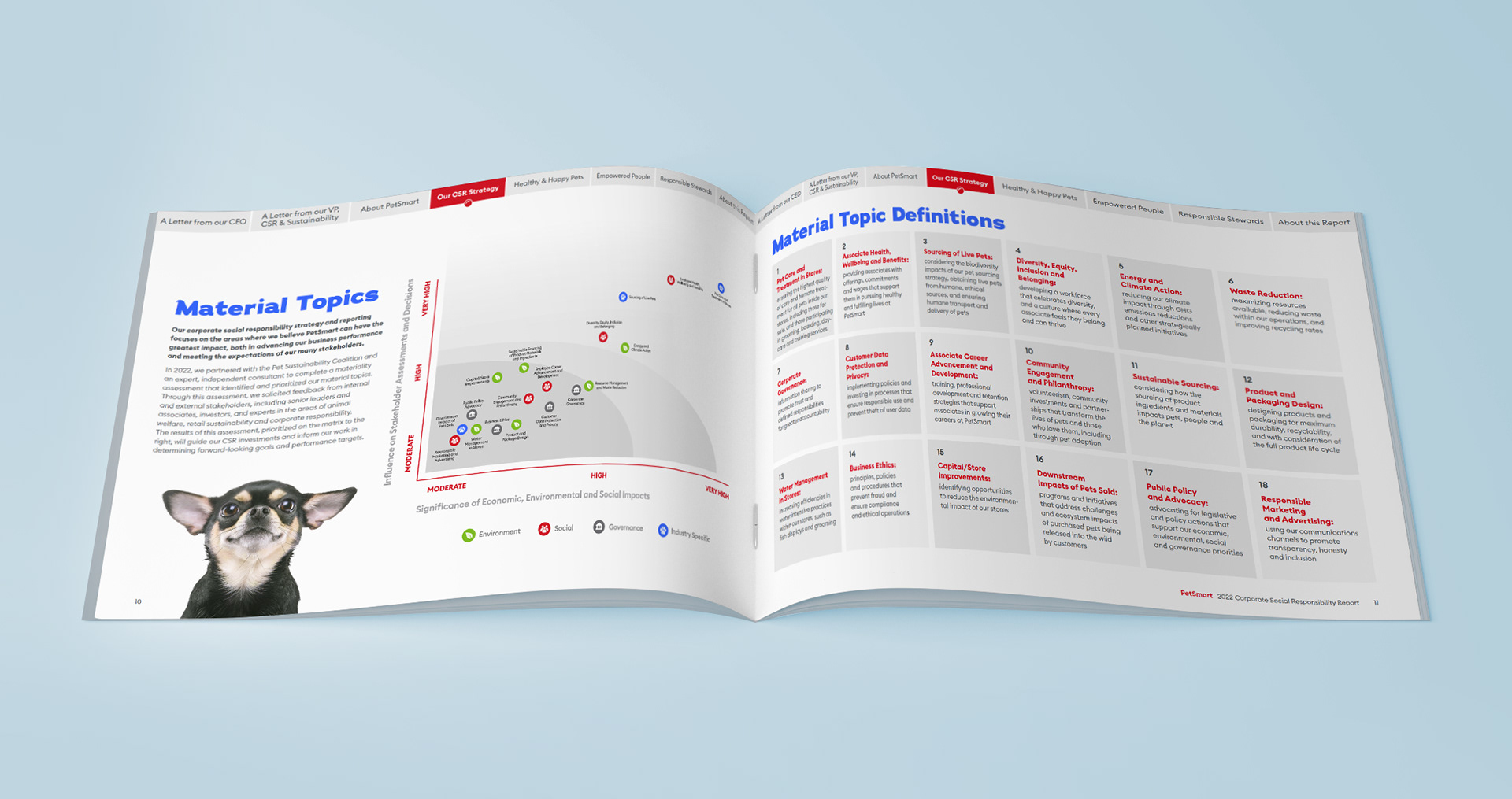 While working at "(add)ventures" I was entrusted with leading the art direction, design and layout for PetSmart's very first Corporate Social Responsibility report. Being the first of its kind, it was important the piece envelop the jovial spirit of the brand with a touch of seriousness to support the overall impact of the objective – understanding PetSmart's investment in their ethical , environmental, philanthropic and economic impact.